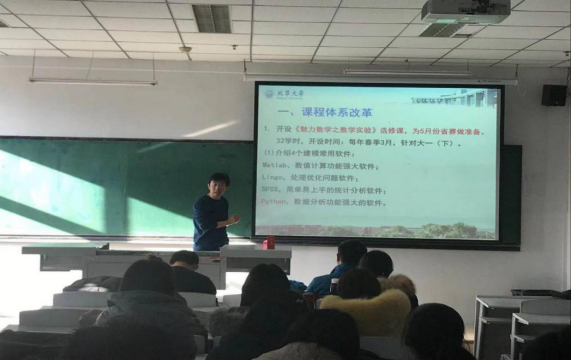 桑海风院长首先介绍了北华大学的课程体系改革,并且对2016年国赛B题进行了分析。通过题目选题,问题的多角度分析,建模方法、建立模型的注意事项,模型求解等五个方面详细展开,最终使实际问题得以解决。