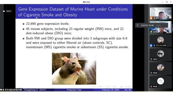 李长城教授通过举例说明对理论结果进行了细致的讲解,并通过基因数据集研究肥胖和吸烟对小白鼠心脏的影响,证明U投影检验方法在变量间具有较强相关关系的时可以具有远超已有高维均值检验方法的效力。报告会结束后,大家对高维因变量线性模型中的线性假设检验问题产生了浓厚的兴趣,老师及同学向李长城教授踊跃提问交流,其中李教授针对同学提出的能否将问题扩展到潜变量中等问题做出耐心解答,并从生物学的角度对样本分割标准进行了展开叙述,拓展了老师同学们的学术视野,激发了同学们的学习热情,为接下来的科研工作积攒了宝贵经验。