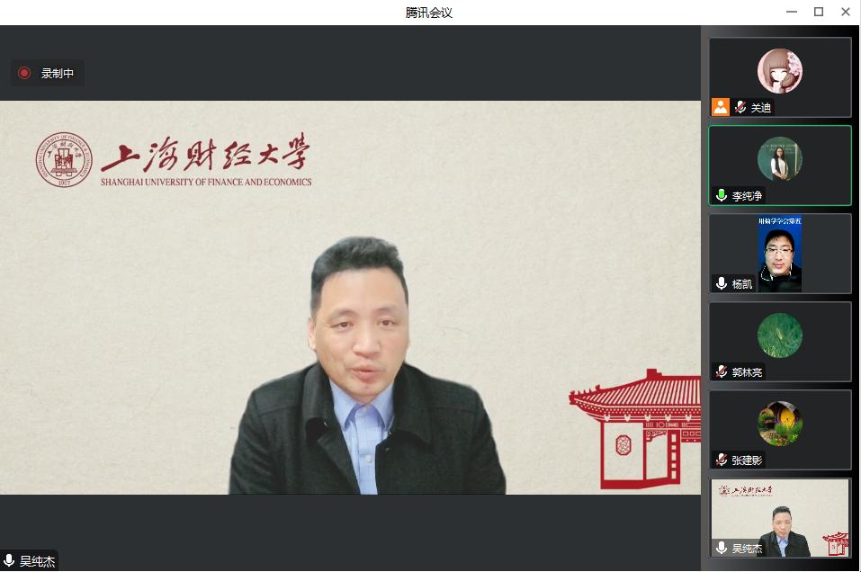 (通讯员:关迪)为了扩展学院的发展方向,提升学习精品课程以及课程建设的理论水平,2023年4月6日下午18:25,由科研处和beat365在线唯一官网登录主办的报告在腾讯会议线上举行,特别邀请上海财经大学吴纯杰教授作为主讲人,基于吴教授本人的研究以及工作经历,为beat365师生进行讲解,我院共有190多名师生前来参会讨论与学习。我院beat365在线唯一官网登录院长王纯杰、副院长李纯净等均参与会议讨论,会议由王纯杰院长主持。
