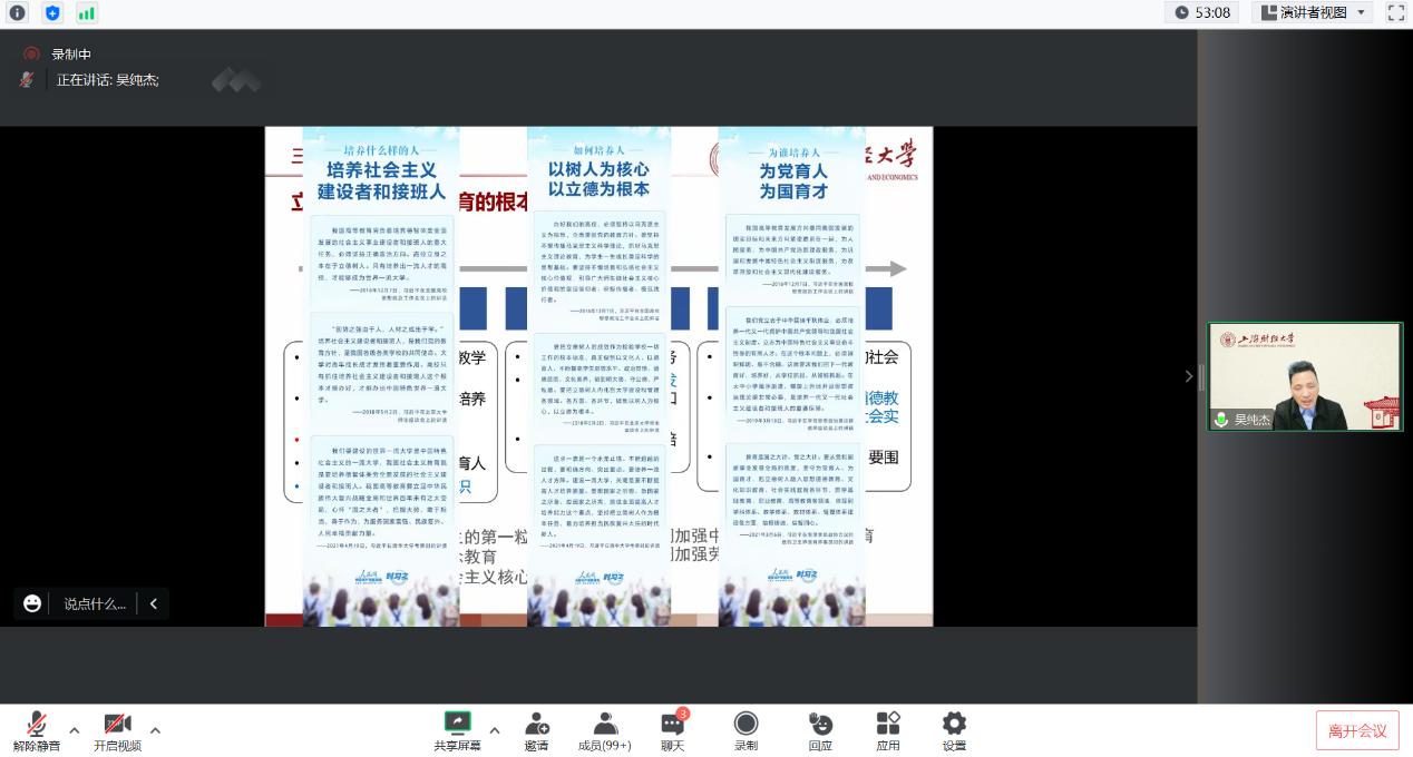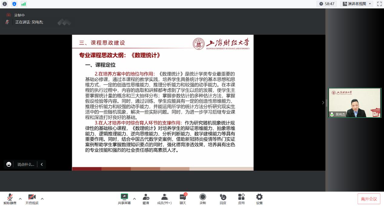 然后,吴教授分享了课程思政建设在数理统计课程中是如何进行的。