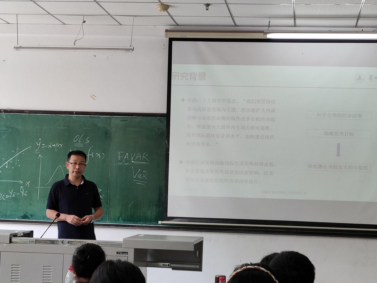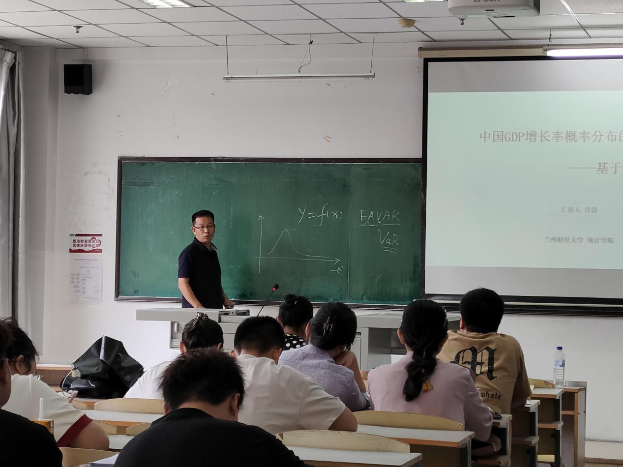 (通讯员:关迪)2023年7月10日上午9时在南湖校区教学科研楼104室,兰州财经大学肖强教授莅临我院做学术报告,会议由肖强教授主讲,学院部分老师和研究生参加了本次学术报告会,报告由统计系副主任王淑影老师主持。