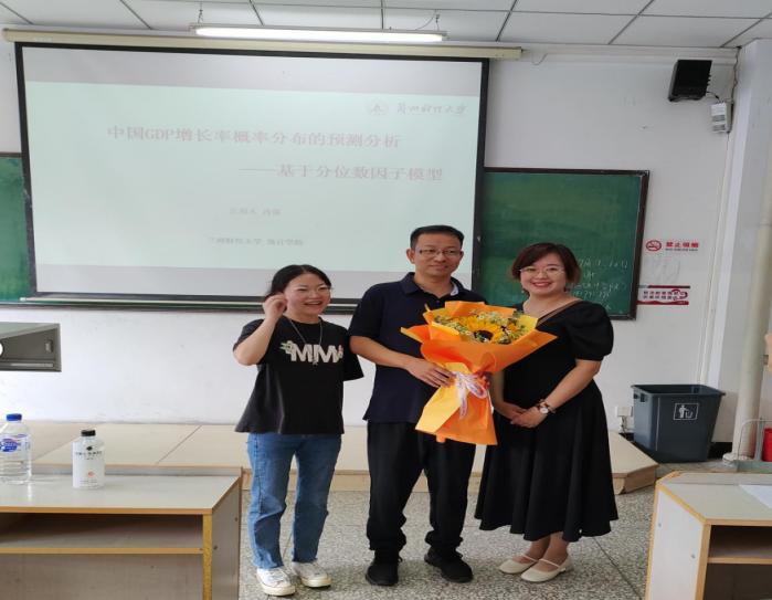 通过本次教授的讲解,我们不仅对基于分位数因子模型有了深刻地了解,还深刻认识到统计数据对未来发展的重要性和意义。学习不仅是为了追求高分,更是为了培养学生的探索能力和实践能力,为学生的未来发展打下坚实的基础。为感谢肖强教授为我院的倾囊相助和认真讲解,我院师生在会议结束后向肖强教授献上鲜花,以表感谢,同学们也纷纷和肖强教授合影留念,表达对肖强教授的喜爱!