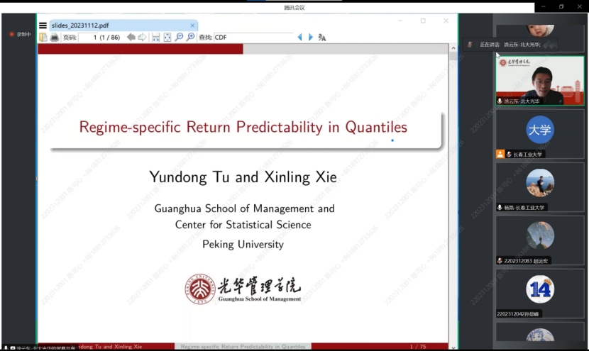 (通讯员:关迪)2023年12月20日14:00 ,北京大学光华管理学院涂云东教授为我院做线上学术报告,会议由学院副院长杨凯副教授主持,学院部分老师、研究生参加了本次线上学术报告会。