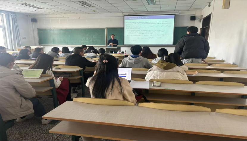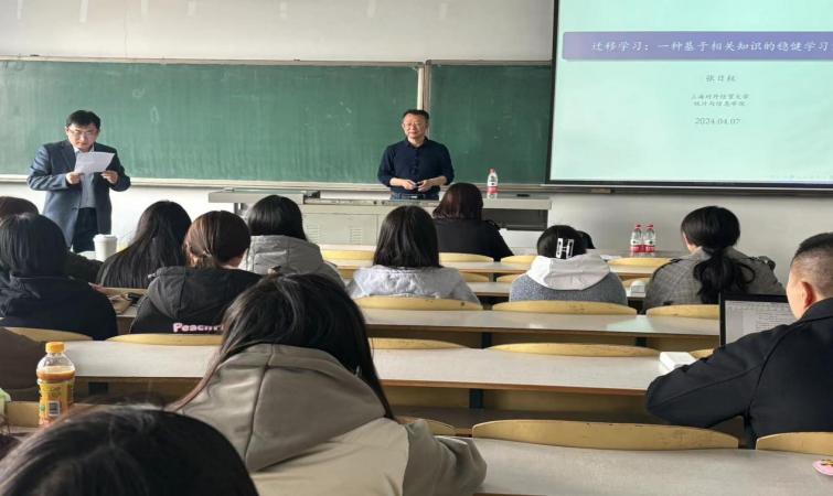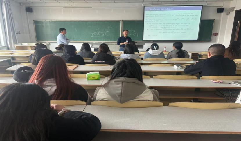 紧接着,张日权教授提出把迁移学习应用在高维数据场景中,提出了一种数据驱动的可迁移数据源识别方法,张教授以严谨的语言表达、条理清晰的讲解方式让同学们了解到迁移学习的重要应用。