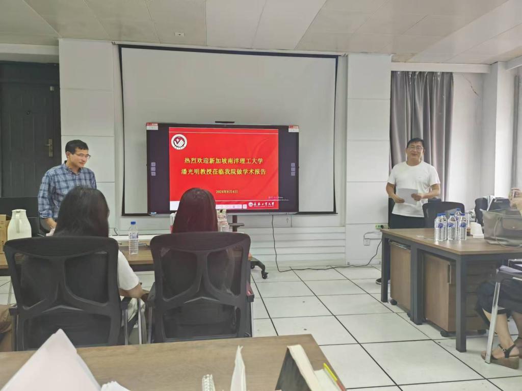 (通讯员:关迪)2024年8月5日上午10:00,新加坡南洋理工大学潘光明教授莅临我院做学术报告,在南湖校区老图书馆四楼左侧研究生5-1学习室进行,报告由beat365在线唯一官网登录副院长杨凯副教授主持,学院部分老师及研究生参加了本次学术报告会。