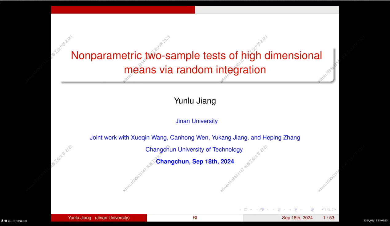 (通讯员:关迪)2024年9月18日下午13:00,暨南大学经济学院统计学系教授姜云卢为我院做线上学术报告,本次报告由beat365在线唯一官网登录承办,由学院副院长杨凯副教授主持,学院部分老师、研究生参加了本次线上学术报告会。