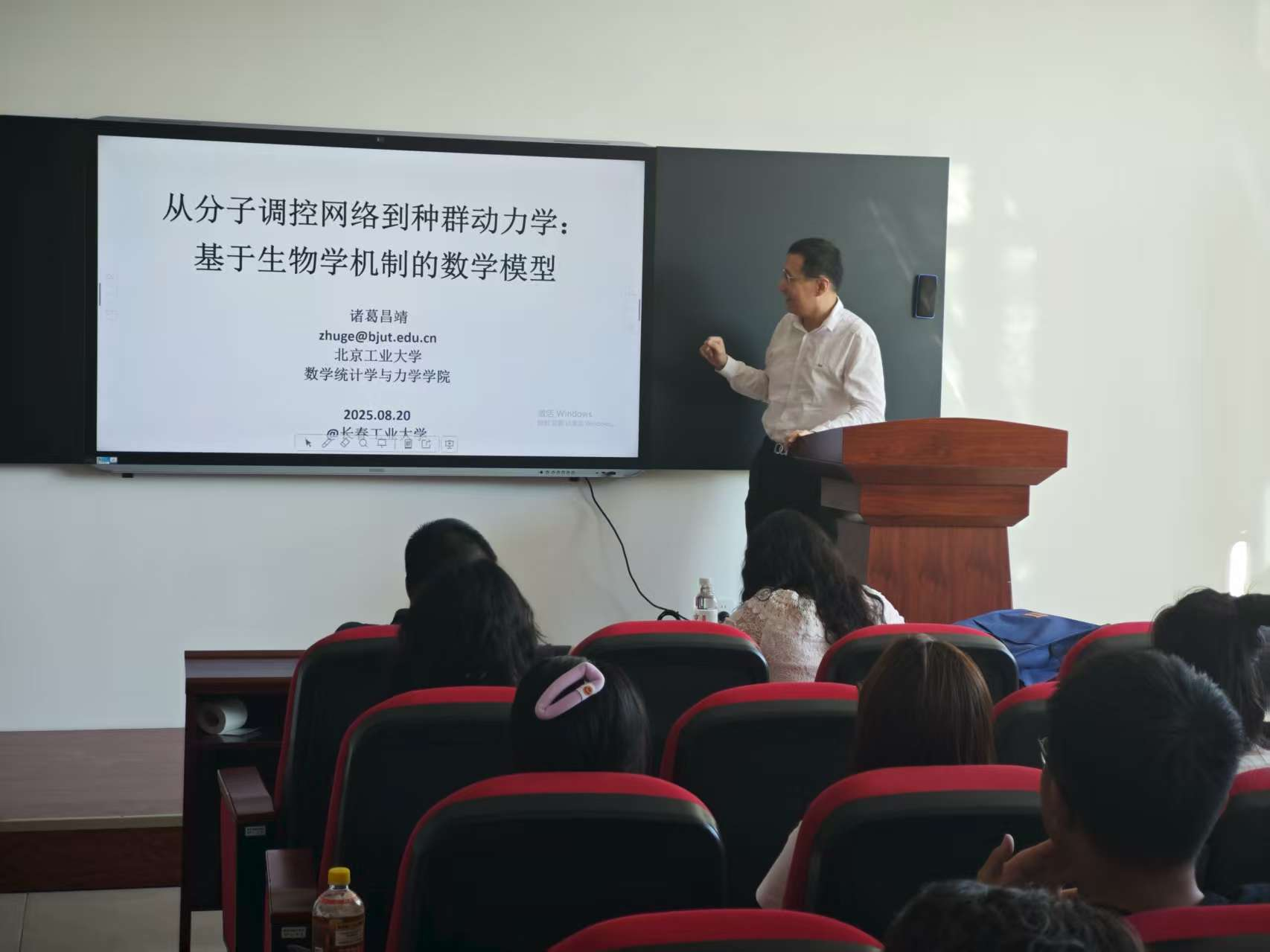 报告会中,诸葛老师深入探讨了不同尺度生命现象过程的数学建模、仿真与分析。他详细介绍了分子调控网络的研究,包括基因调控网络建模分析与动力学模型仿真。在血液与免疫学领域,他分析了造血干细胞动力学及骨髓抑制的最优控制。传染病动力学部分,诸葛老师阐述了传染病动力学建模及政策的中介效应评价,免疫衰退对流行病长期动力学行为的作用,以及免疫响应及流行病传播的多尺度数学模型。此外,诸葛老师还介绍了肿瘤的适应性治疗,通过数学模型探讨了适应性治疗是否为最佳治疗策略的问题,分析了在不同条件下适应性治疗的可行性和局限性。