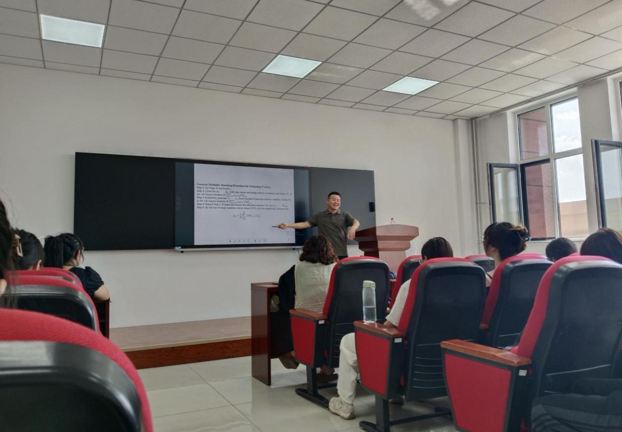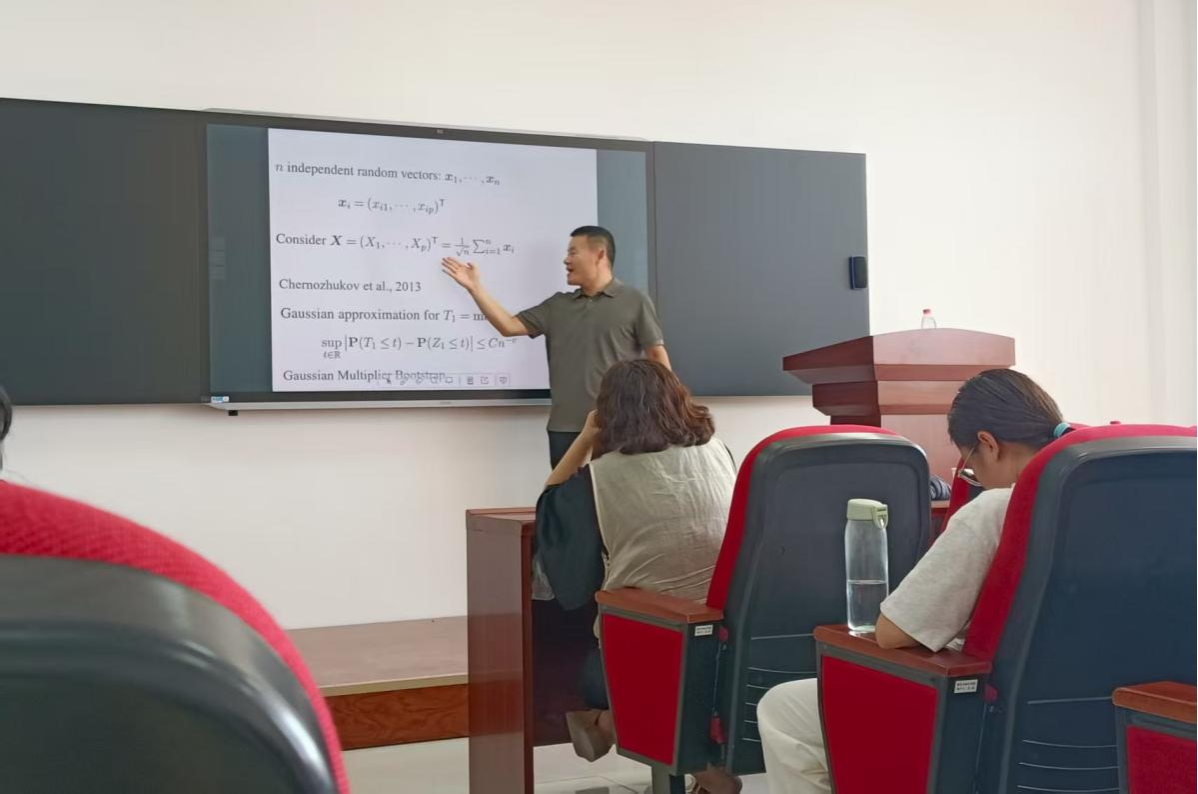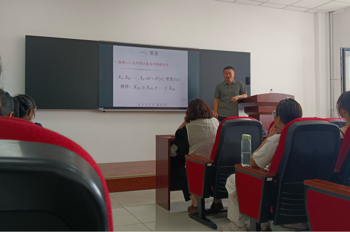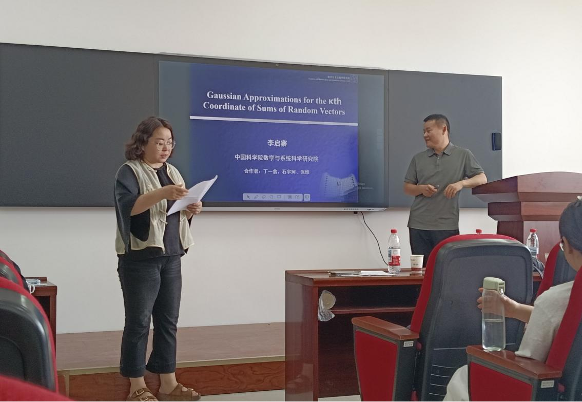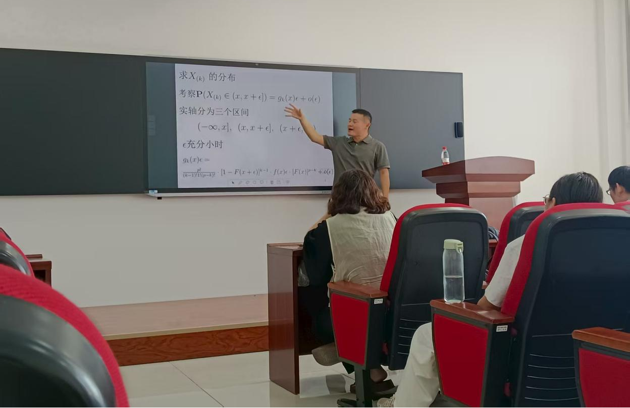 李启寨老师围绕 “随机向量和第 k 个坐标的高斯近似” 这一核心问题,从引言、主要结果、小结三大部分展开深入讲解,层层递进破解学术难题。在引言部分,团队首先梳理了次序统计量的研究基础:对于独立同分布的连续随机变量,虽可推导其精确分布,但实际应用中数据分布往往难以精准获取,因此渐近分布成为研究重点。