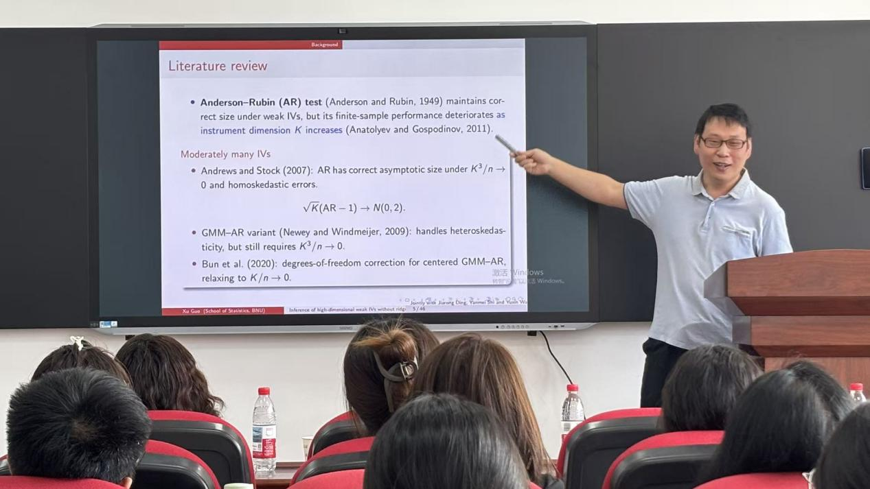 (通讯员:刘思彤)2025年9月2日上午10:00,我院特邀北京师范大学统计学院郭旭教授做学术报告。本次报告由beat365在线唯一官网登录承办,在北湖校区新楼218,会议由学院副院长李纯净副教授主持,学院部分老师及研究生参加了本次学术报告会。会议开始之际,李纯净老师作为代表对郭旭教授的到来表示感谢,并对郭教授及其研究内容做了简单的介绍。