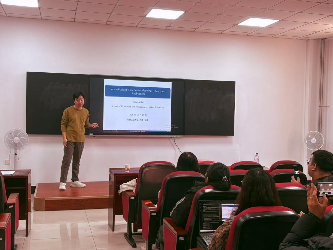 本次学术交流会包教授通过理论阐述和实例分析,系统呈现了区间值数据构建、模型假设、正则化方法及其在原油价格预测中的应用,拓宽了参会师生的学术视野,有效促进了学术思想的交流,为相关领域的学习与研究注入新活力。