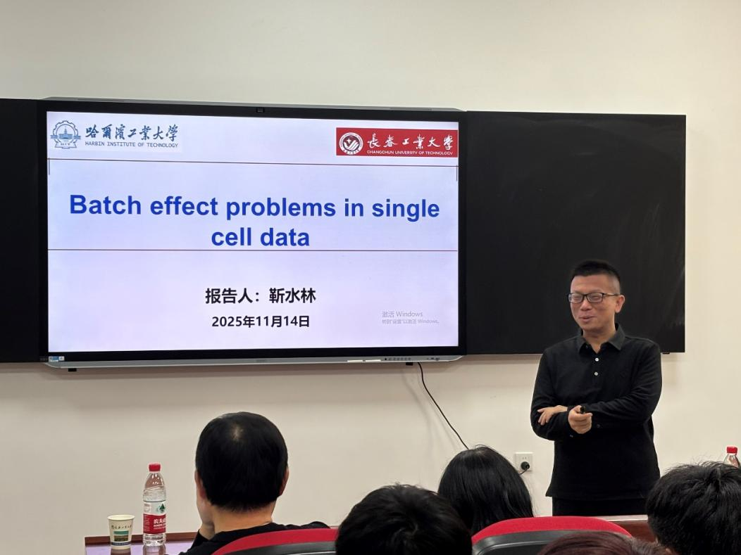 (通讯员:边睿骞)2025年11月14日下午15:00,哈尔滨工业大学靳水林教授莅临beat365在线唯一官网登录,针对单细胞数据中的批次效应问题,开展了一场专业且富有启发性的学术报告。本次报告由beat365在线唯一官网登录承办,在北湖东校区数统新楼216室进行,会议由beat365在线唯一官网登录副院长杨凯教授主持,学院的部分老师和研究生参加了本次学术报告会。