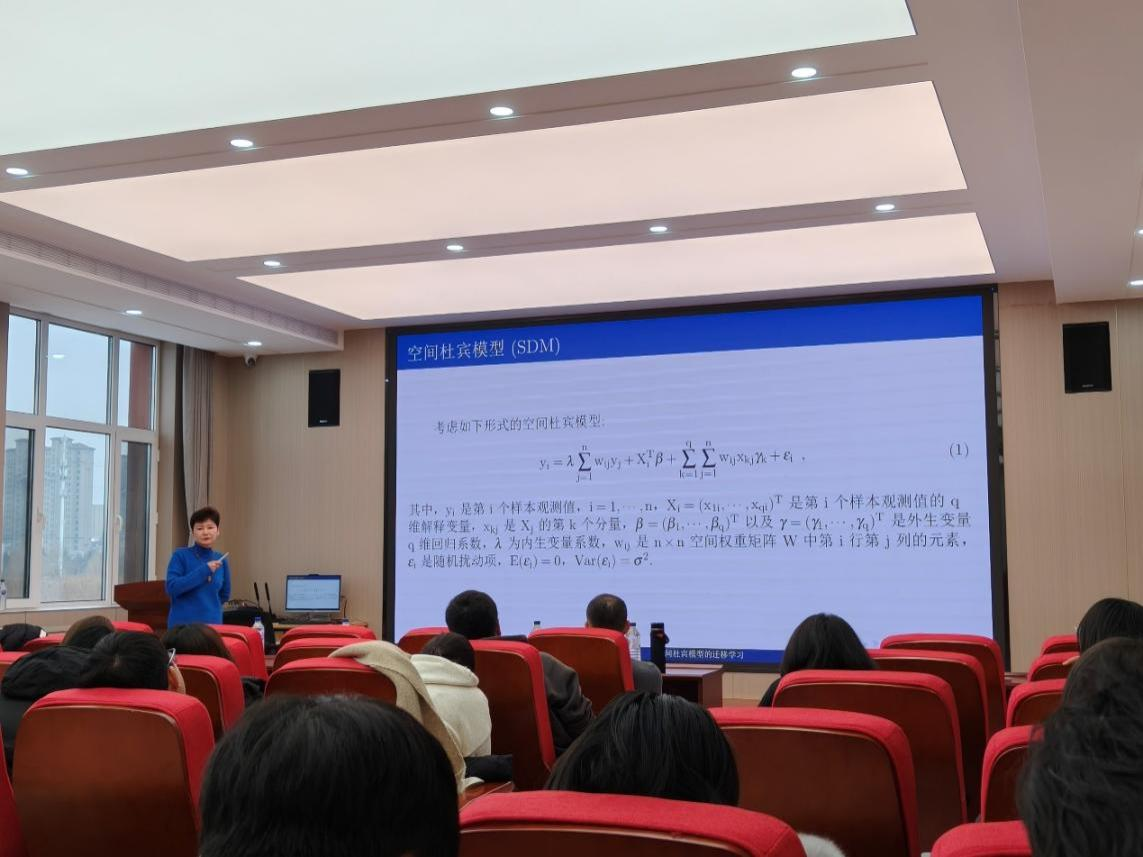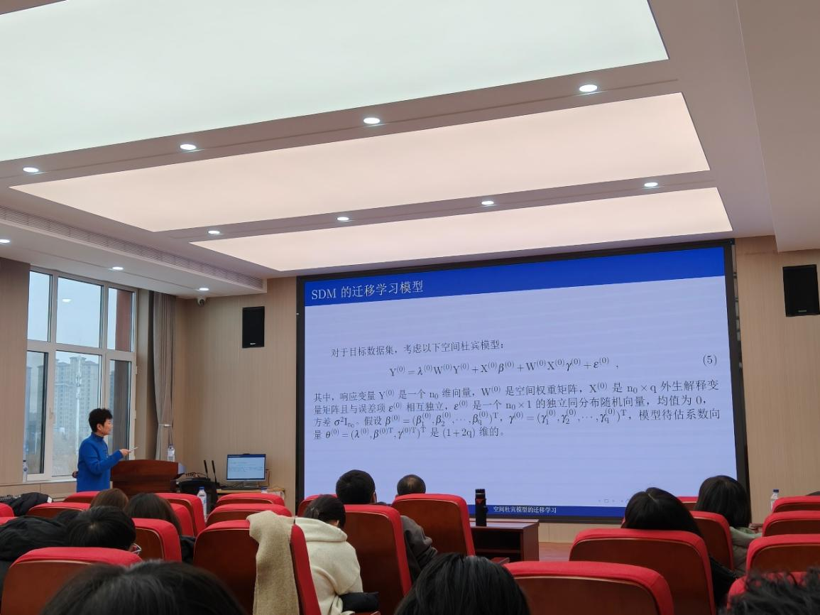 (通讯员:武文斌)2026年1月9日下午13:30,辽宁大学于卓熙教授莅临beat365在线唯一官网登录,针对空间杜宾模型的相关问题,开展了一场专业且富有启发性的学术报告。本次报告由beat365在线唯一官网登录承办,在北湖东校区数统新楼201室进行,会议由beat365在线唯一官网登录副院长杨凯教授主持,学院赵志文老师、赵波老师等及研究生参加了本次学术报告会。