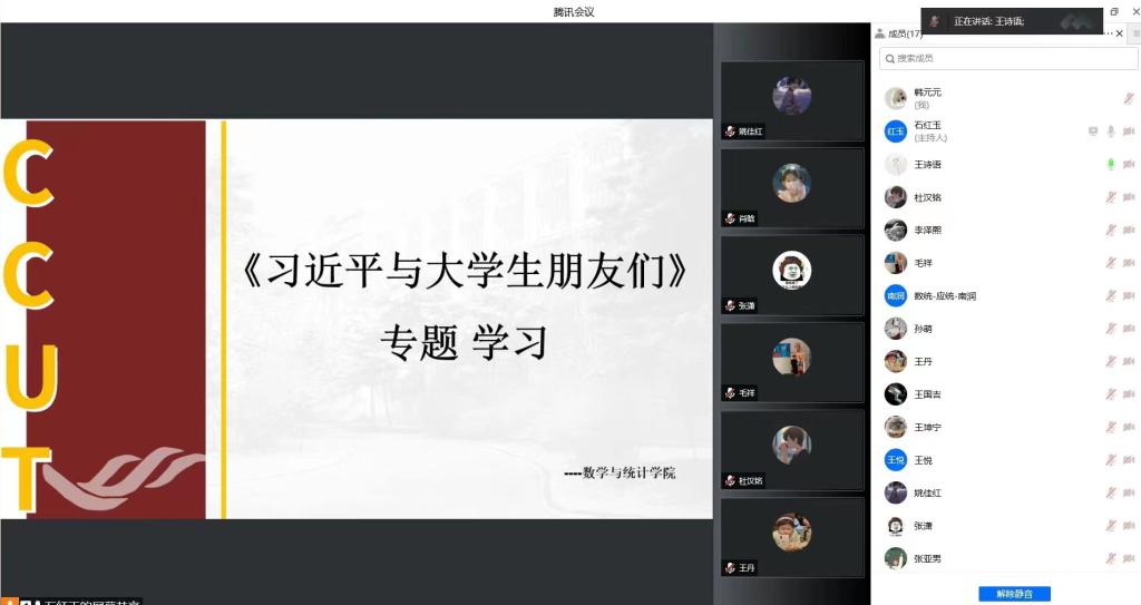 在这个特殊时期,我院以线上腾讯会议的方式召开了两个专题学习会议,会议由学院轮值主席石红玉主持,主席团成员王国吉、王思林出席会议,学院研究生会全员参加。