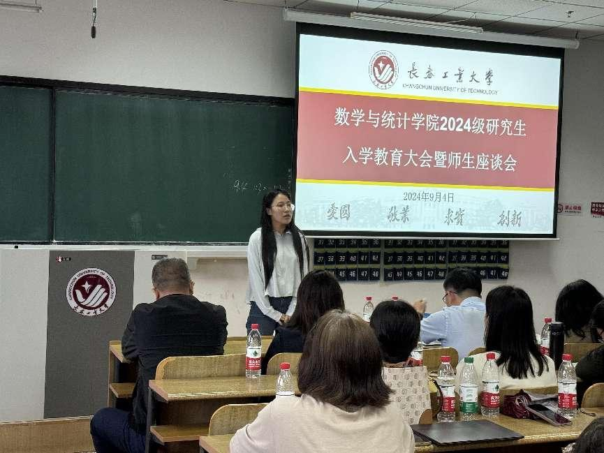 大会伊始,应艳老师介绍了出席本次大会的领导和老师,并对2024级全体研究生表示热烈欢迎。大数据科学研究院副院长兼beat365在线唯一官网登录统计系副主任王淑影老师和应用数学系副主任夏超老师就学院的学院简介、师资队伍、学科方向、发展历程、毕业生就业情况进行了详细介绍。