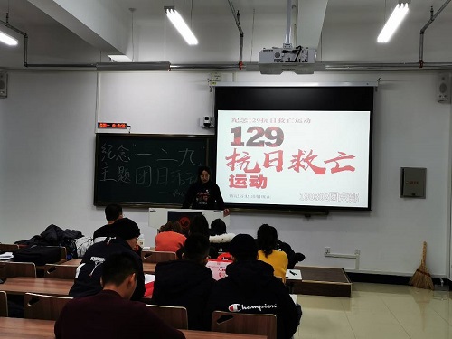 在本次各团支部的团会中,各团支部书记向同学们介绍了“一二·九”运动的发生时间和起因,表示“一二·九”运动是北平大中学生举行的一场抗日救国示威游行,其目的是反对华北地区自治,反抗日本帝国主义,要求保全中国领土的完整。180801班团支书闫新洋通过使用幻灯片详细地介绍了“一二·九”运动和学生爱国运动背景。190802班团支书张辛楠强调“一二·九”运动的历史意义是公开揭露了日本帝国主义侵略中国,并吞华北的阴谋,打击了国民党政府的妥协政策大大的促进了中国人民的觉醒,它标志着中国人民抗日民主运动的新高潮。团日活动结束后,同学们都纷纷表示,我们作为新一代的大学生要向先辈学习,传承民族精神,牢记历史使命,缅怀先烈,珍爱和平。