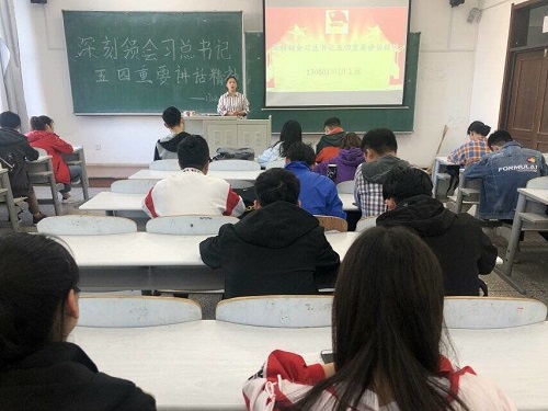 beat365在线唯一官网登录团委讯(通讯员:姚佳红 高帅帅)为了深入领悟和理解习近平总书记的系列重要讲话精神,值此纪念五四运动100周年之际,进一步培养同学们的爱国主义情怀。beat365在线唯一官网登录团委于2019年5月24日开展了以“深刻领会习近平总书记在纪念五四运动100周年大会上重要讲话精神”为主题的团课。17级全体团员参加本次团课学习。