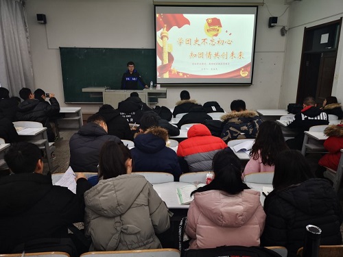 会上,虎佳尧向同学们介绍了共青团的基本情况,包括入团条件和历史阶段,同时重点讲述了共青团的光辉历程、品牌工作、先进典型及他们的光荣事迹,他们不怕苦不怕累、甘于奉献不求回报、敢于面对困难与挑战的精神,激励着当代青年奋勇向前,积极奋斗。虎佳尧提出,希望同学们要充分熟悉团的光辉历史,激励同学以团的历史上的先锋人物为榜样,时刻不忘做有理想、有激情、有担当的新时代青年,并在日常学习中苦练自身本领,时刻准备为国家建设贡献自己的力量。