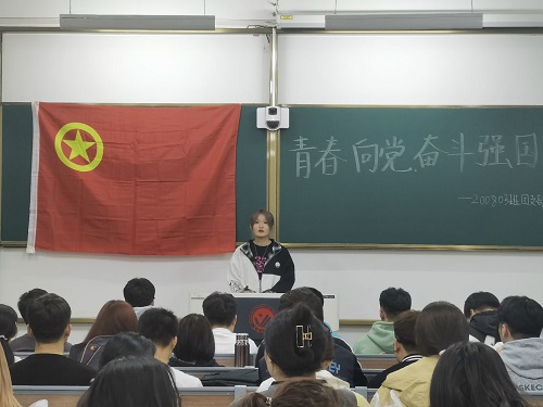 此次主题团日活动在各班团支书的带领下,全体团员们起立齐唱《义勇军进行曲》并庄严宣誓,誓词句句铿锵有力,字字掷地有声,许下承诺,扛起担当。各班级团支书和优秀团员代表们做了团旗下的演讲,号召团员们在新时代继承和弘扬党的优良传统,有效发挥了共青团是党的助手和后备军作用,争做担当民族复兴大任的时代新人。在齐唱团歌环节结束之后,180801班团支书闫新洋带领大家观看了“青春向党,奋斗强国”系列精选视频。200802班团支书颜兴洲向同学们列举了建党以来的红色故事和红色诗歌,并详细讲述了新中国成立的历史以及所取得的成就。在活动开展的过程中,同学们认真听讲,积极回答问题,深刻地体会到党与祖国发展的紧密联系。通过口述介绍、媒体播放等多种方式结合,引导团员们树立正确的价值观和人生观,不断思索进取,树立远大志向,为祖国美好的明天不断奋斗。会议最后,团员们就“如何传承、发扬党的红色基因”等话题做了交流分享。