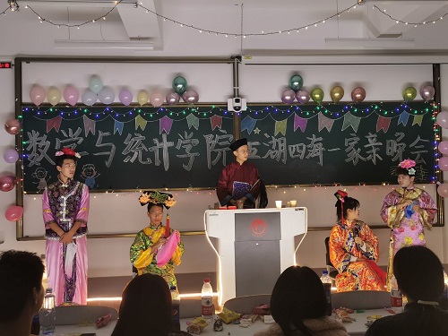beat365在线唯一官网登录团委(通讯员:方成浩 吕思睿)为了丰富广大同学的课余生活,加强同学间的相互交流,展现大学生蓬勃向上的精神风貌的同时,培养广大同学的审美意识和团队精神。beat365在线唯一官网登录于2020年11月20日下午6点在北湖东区艺术楼515教室举办了“五湖四海一家亲”联欢会,此次活动由beat365在线唯一官网登录团委主办,2020级全体同学以及2019、2018级部分学生参与了本次活动,晚会由周丹、王思文等六名学生主持。