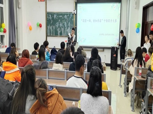beat365在线唯一官网登录团委讯(通讯员:陈铭)为丰富同学们的课余生活,努力营造积极向上、健康文明的校园文化气氛,展示同学们的文艺风采。beat365在线唯一官网登录于2019年11月15日晚18时30分在主楼315教室举办了主题为“高歌一曲,安如青春”歌唱比赛活动。2019级学生李星晰、蒋石磊、等七名同学参加比赛,吕丹阳,陈晗同学担任赛会主持人。