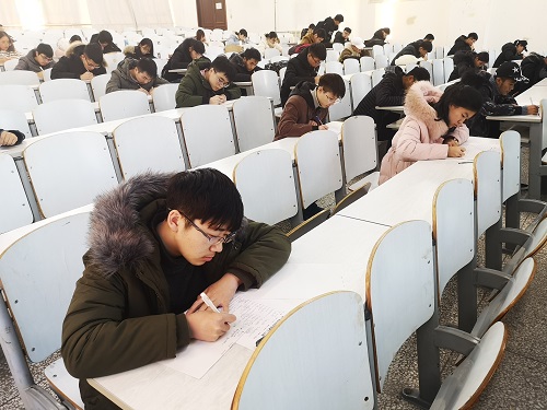 3点30分考试开始,考场秩序井然,严肃安静,监考人员严明负责,不时在考场巡查,确保考场纪律,同学们准备充足,胸有成竹地认真答题,还有部分同学信心十足的提前交卷。考试结束后,试卷将送交至学院学科竞赛指导委员会及“每周一题”协会命题组教师进行批阅。