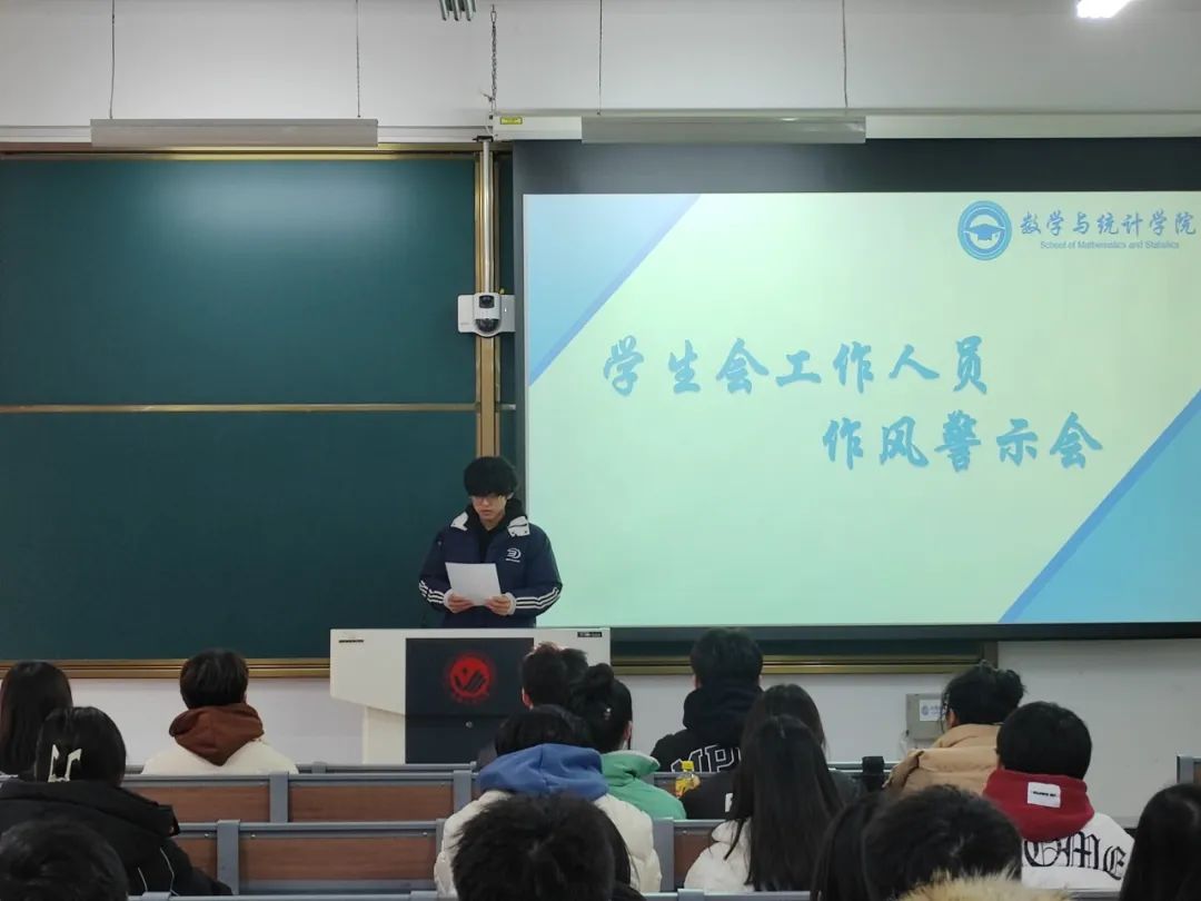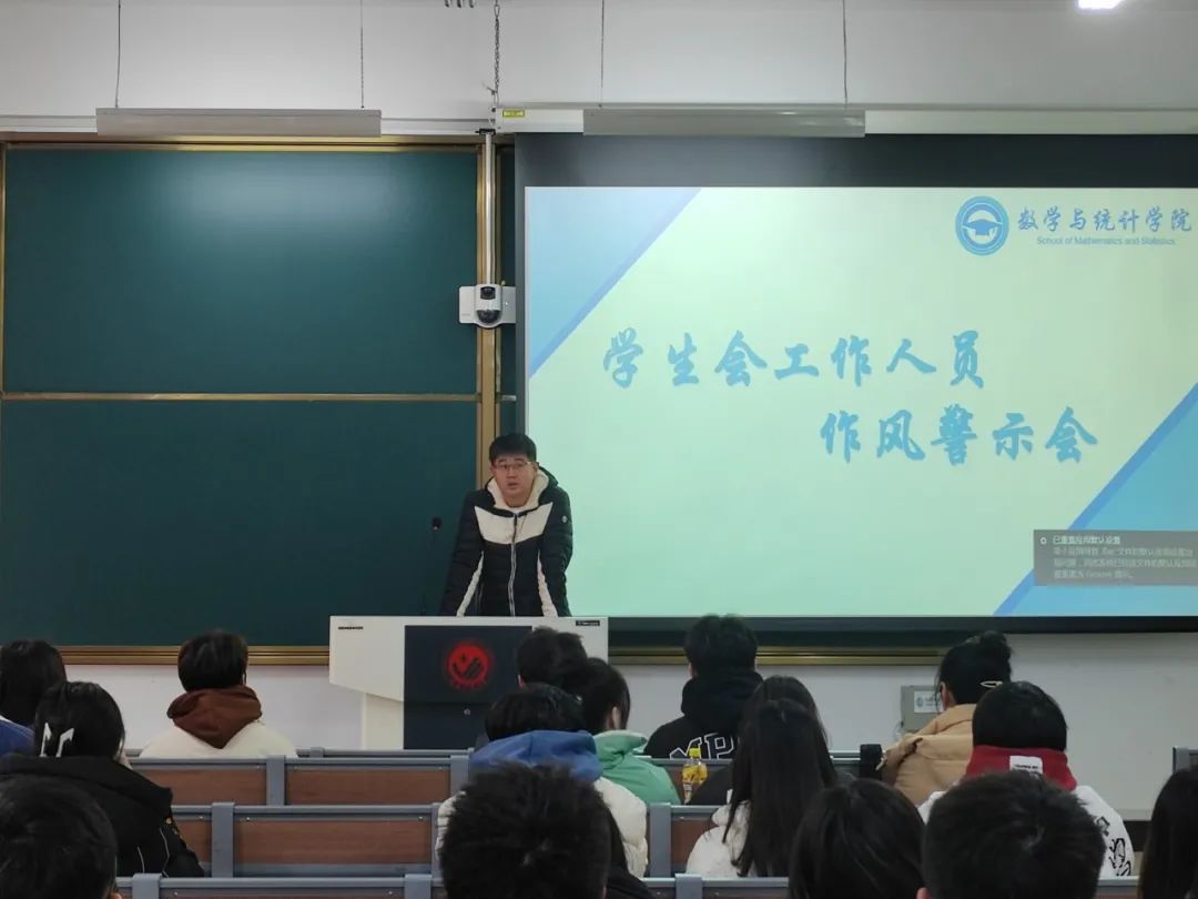 beat365在线唯一官网登录团委讯(通讯员:唐梦然 汪新雨)为深入学习党的二十大精神,进一步推进学生会组织改革,加强学生会全体工作人员的作风建设,明确职能,加强自律,营造良好的气氛,2023年12月22日,beat365在线唯一官网登录在beat365在线唯一官网登录北湖东区主楼228召开学生会工作人员作风警示会,本次会议由beat365在线唯一官网登录23级辅导员白海洋老师主持,数学与统计学院学生会全体工作人员及团委中心学生干部骨干列席参会。