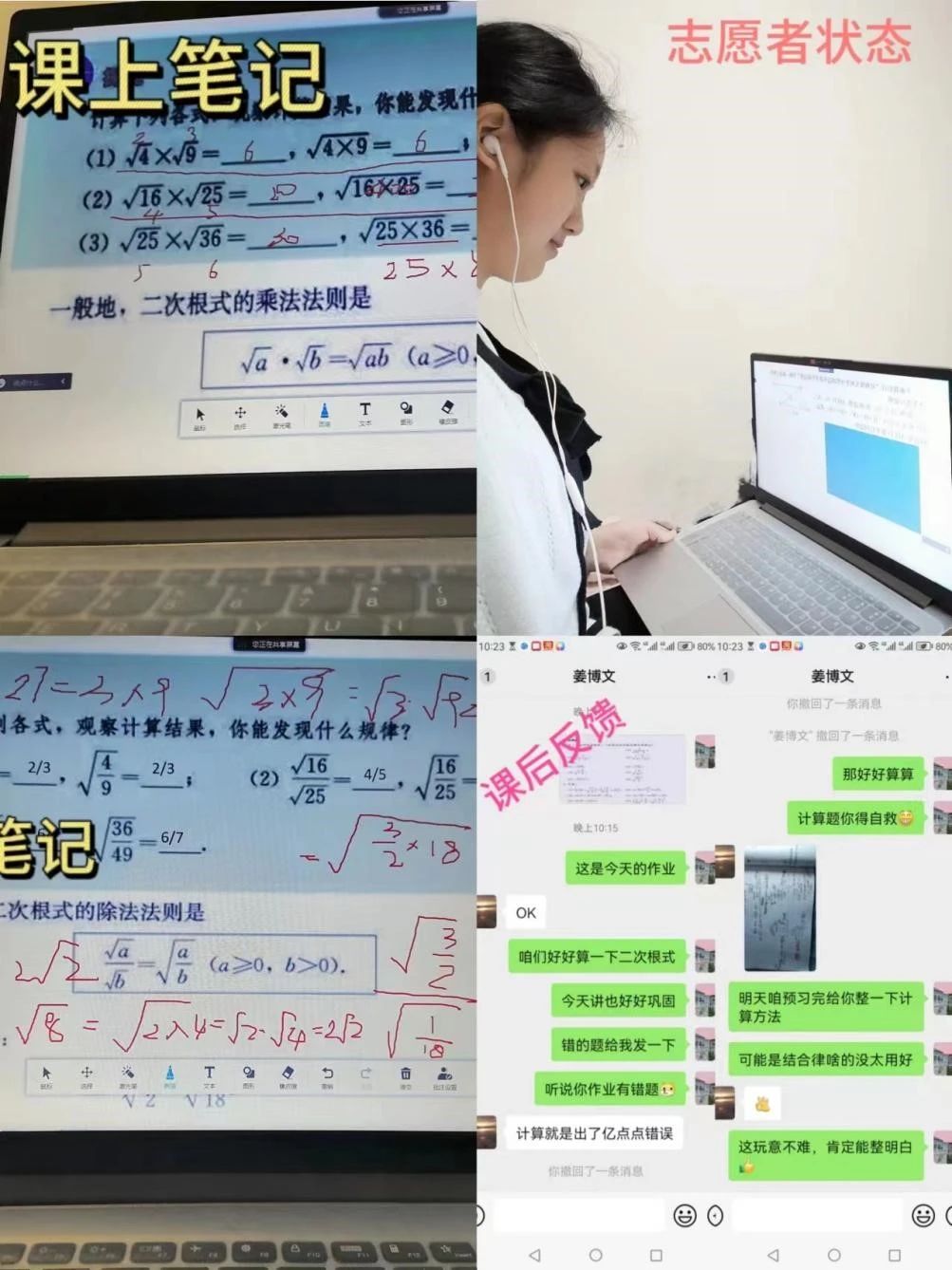 自活动开展以来,我院一批政治觉悟高、业务素质好的优秀青年积极主动报名参加,并在第一时间完成结对子。“学伴+”志愿者们针对服务对象的年级、学科、主要学业帮助诉求等问题,组建“一对一”、“多对一”的学业帮帮团,借助线上微信视频通话、QQ屏幕共享、腾讯会议等平台,通过线上或线下辅导等多种方式,及时解答服务对象的学业问题,用热情与真诚践行志愿精神,得到了学生家长和学生们的一致认可和好评。本期让我们一起了解beat365在线唯一官网登录“学伴+”志愿者们的伴学故事和心声。