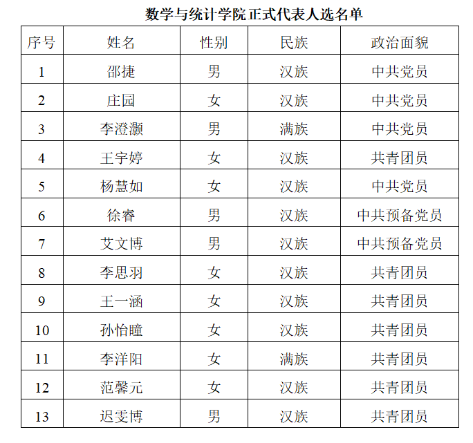 根据《共青团beat365在线唯一官网登录第二次代表大会代表选举工作办法》,经学院团员大会差额选举,现将学院团委选举产生的共青团beat365在线唯一官网登录第二次代表大会正式代表人选进行公示: