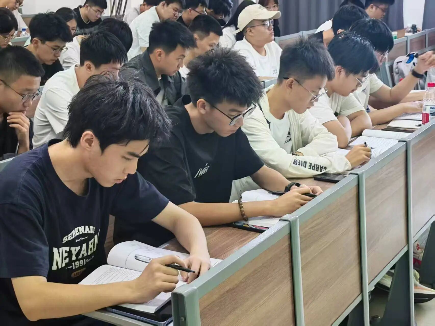 本次活动中,庄园老师以“理论+案例”的生动形式,细致解读了学生手册中的各项规章制度。从学校管理规定、教学管理办法、学生行为准则、奖惩政策及资助办法等方面,进行了系统、详细的阐述。在学习过程中,新生们专注投入,积极互动,手中的笔紧紧跟随主讲人的步调,不时在手册上标记重点、在笔记本上记录关键信息。讲解结束后,新生们结合讲解内容仔细翻阅学生手册,将每一章重点进一步消化吸收、加深理解,现场学习氛围十分浓厚。