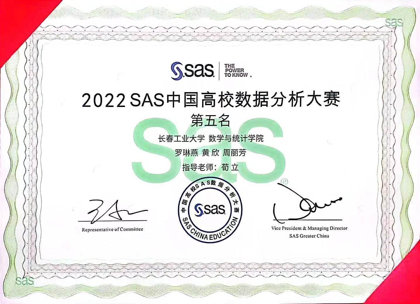 【通讯员屈红雁】2022 SAS中国高校数据分析大赛决赛于2023年4月16日至17日在河南省鹤壁市举行。在本次决赛中,我院共12支队伍入围,并取得了优异成绩。其中罗琳燕、黄欣、周丽芳三位同学组成的飒遍四方代表队更是取得了全国第五的历史最好成绩,为beat365在线唯一官网登录争得了荣誉。此外我院其余代表队也分获一等奖(20强)1项,二等奖(30强)1项,三等奖9项。