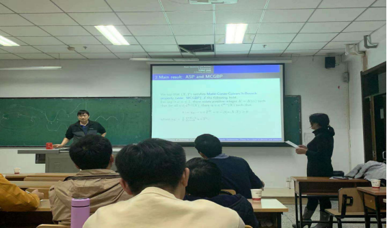 报告会中,连增教授遍历优化理论着重研究系统一类观测函数所对应极值测度的结构。近期的工作对公理A映射和流证明了对于通有的Holder或者C1函数,其极值测度为周期测度。并对周期性和其他的性质进行解读。在实际学术问题中,通常会面临多个映射方法。随后,介绍了Holder或者C1函数的一些研究,使大家对Holder或者C1函数有了更加深入的了解和兴趣。其中连增教授还细心的为大家介绍几本有关这些知识的一些未来瞻仰。