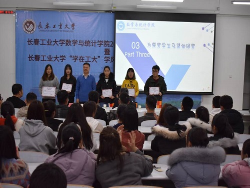 活动于晚上6点30分正式举行,国歌奏唱完毕后,团委书记郑岩老师宣读《关于表彰beat365在线唯一官网登录2019年度学风建设优良集体和先进个人的决定》,逐一介绍了学业标兵、优秀个人、学科竞赛精英等七个奖项的获奖集体及个人;随后,出席表彰会的院领导依次为获奖人员颁发证书及奖品;颁奖完毕后,获奖学生代表卢继迎同学进行发言,表达了对学院老师辛勤栽培的感谢,以自身学习经历为出发点强调在求知道路上“诚信”的重要性,为帮助学生们怎样树立有效的学习目标、加强正确的学习观念作出重要参考;最后,学院党委书记朱宏伟对我院近年来取得的学术成果及学院优势进行了归纳总结,鼓励学生们努力学习,加强学习信心,继续发扬认真严谨的“数学精神”。 在接受学风建设工作表彰的同学们得到了全院师生们的一致好评和认可,同时也为广大同学树立了榜样,加强了学生学习动力,为全面实现beat365在线唯一官网登录人才培养质量“双计划、双提升”工程奠定了坚实的基础。
