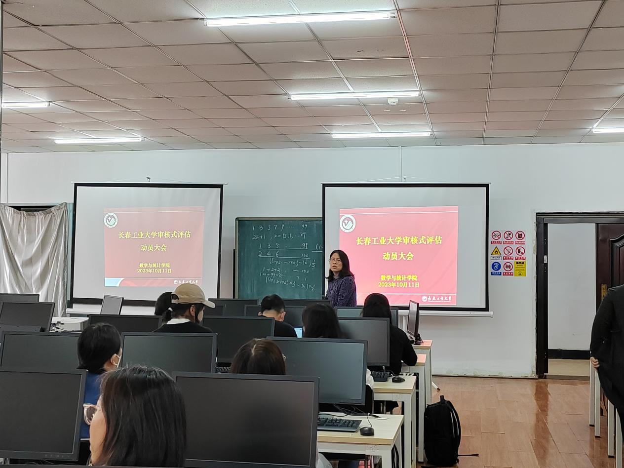 2023年10月11日下午13:30,beat365在线唯一官网登录全体教师在新图书馆二楼机房,举办了本科教育教学审核评估工作动员大会,旨在推动全院上下统一思想共识、精准谋划部署、压实各方责任,以决战的状态、必胜的信念,保证高质量、高水平、高标准完成本次本科教育教学审核评估工作。