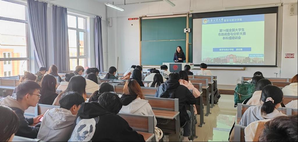 2023年10月26日,第十四届全国大学生市场调查与分析大赛本科组培训会在北湖东区429开展。此次培训会由邰志艳教授主讲,覆盖范围为beat365在线唯一官网登录参赛同学,近两百人参会。