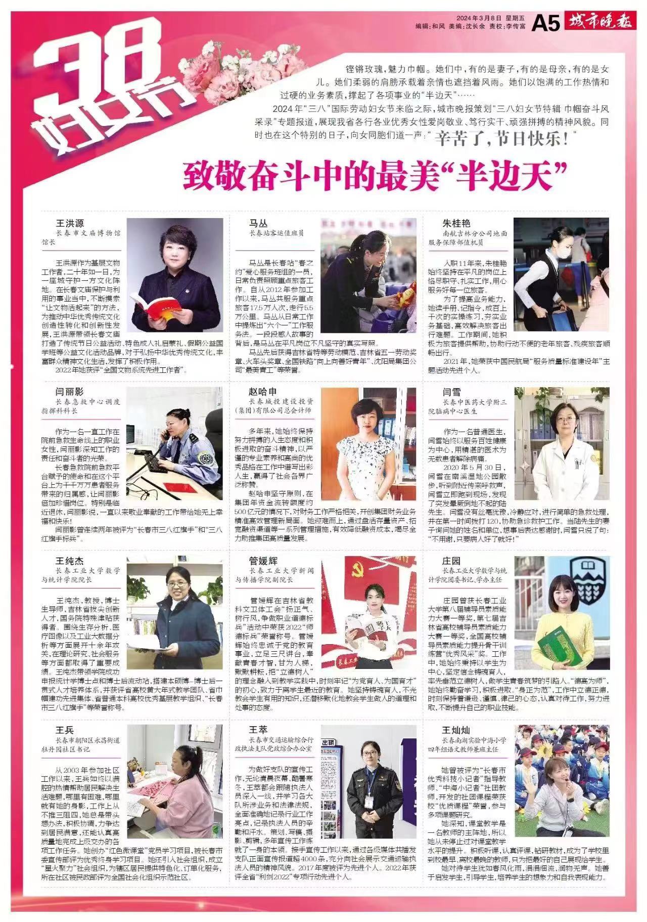 铿锵玫瑰,魅力巾帼。2024年“三八”国际劳动妇女节来临之际,城市晚报策划“三八妇女节特辑巾帼奋斗风采录”专题报道,beat365在线唯一官网登录院长王纯杰与beat365在线唯一官网登录团委书记、学办主任庄园这两位教师的光荣事迹被城市晚报刊登,展现了beat365在线唯一官网登录优秀女性教师爱岗敬业、笃行实干、顽强拼搏的精神风貌。