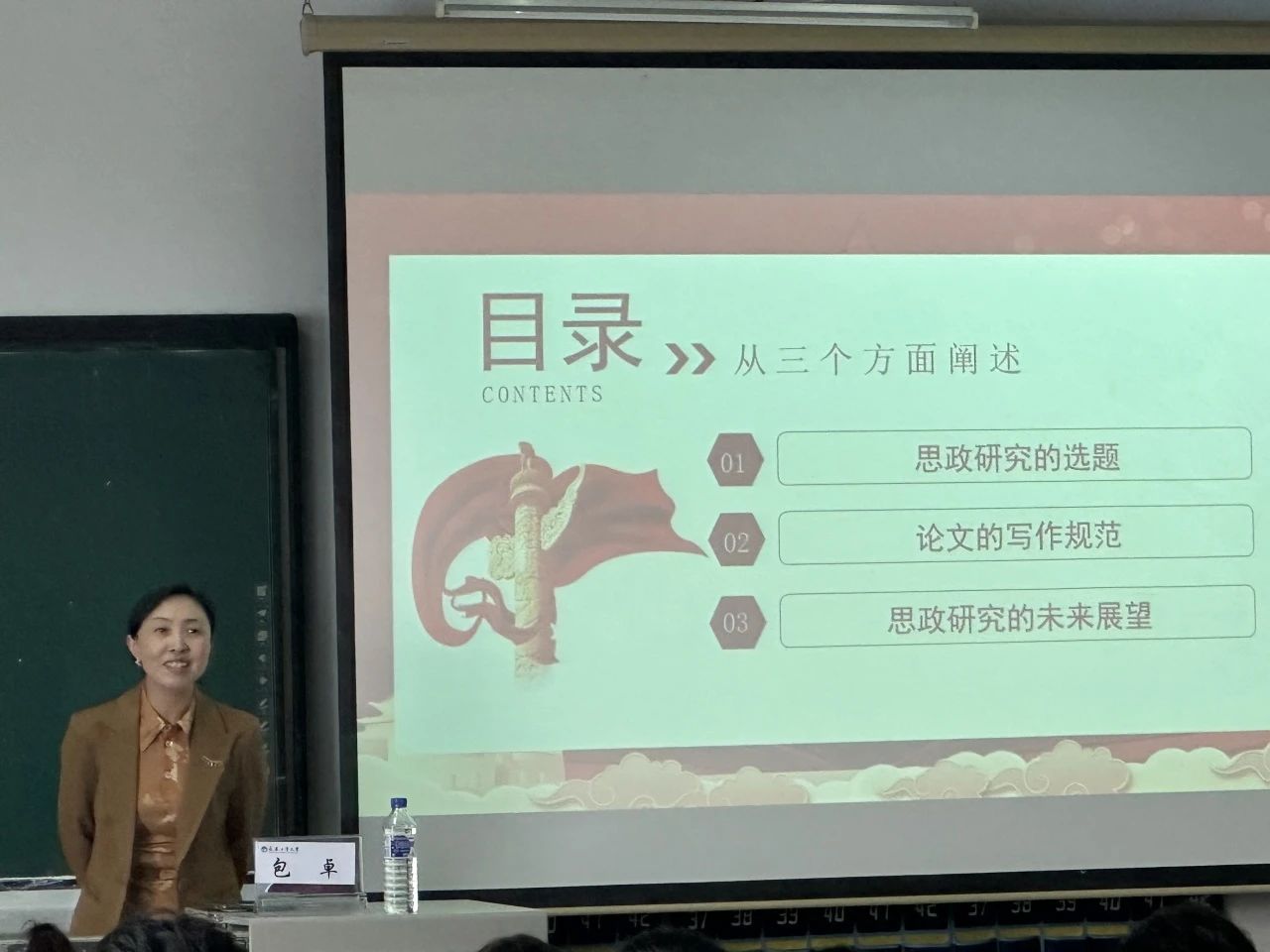 在启动仪式结束后,马克思主义学院副教授包卓老师为学员们进行了《为思政研究奠定理论之基,插上科技之翅》学术报告。包卓老师从思政研究的选题、论文的写作规范以及思政研究的未来展望三个方面进行了详细的论述,为同学们提高思政研究能力提供了有效指导。