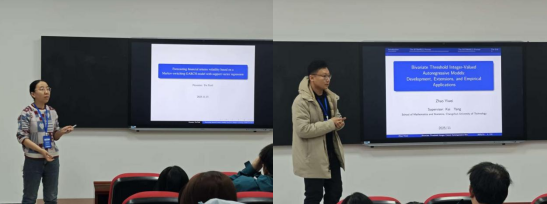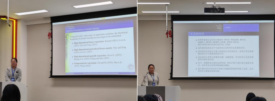 接下来的博士生论坛,共分为三个模块,分别为“复杂生存数据研究进展”、“现代机器学习方法进展”以及“复杂相依数据建模与推断”。东北师范大学王晴博士、吉林大学王淳博士以及我院林珊屹、赵一伟、李晶等博士研究生分别做学术报告,与参会教师和学生分享自己的科研成果,并和大家进行热烈的学术交流与讨论。