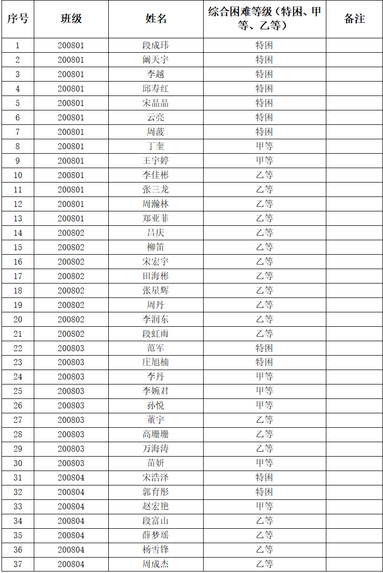 明确认定范围,困难等级,认定标准,认定程序;按照国家文件规定,脱贫家庭学生(原建档立卡贫困家庭学生)、脱贫不稳定家庭学生、边缘易致贫家庭学生、突发严重困难家庭学生、城乡低保家庭学生、特困救助供养学生、家庭经济困难残疾学生和孤儿这8类学生必须被经济困难认定全覆盖;对2020、2021、2022级家庭经济困难学生进行摸排,将家庭经济状况好转的学生从困难生名单中去除,个别学生自愿放弃经济困难认定资格,将家庭因各类突发情况导致的经济困难学生增补。经本人申请,班级民主评议,班级评议小组初评,在班级公示1天后上报学院,学院认定工作组审核初评结果。现在全院内进行公示,请同学们在公示期内提出意见。