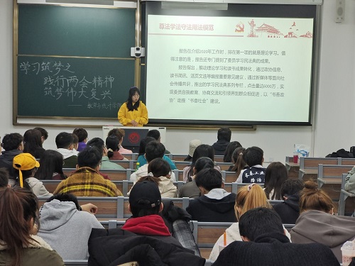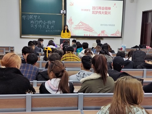 张辛楠为同学们详细的介绍了“两会”的含意,“两会”的会议的议程,认真学习并理解了做为一名新时代的大学生,如何在李克强总理的政府工作报告中确立人生目标和奋斗目标;同学们深刻地领悟到,在中国共产党的领导下,国家去年和今年以来的政府工作成果。过去的一年,面对纷繁复杂的国内外形势,面对各种风险挑战,面临疫情,在以习近平同志为核心的党中央坚强领导下,全国人民齐心协力、苦干实干,经济社会发展取得来之不易的好成绩,经济结构不断优化,改革开放取得新突破,人民生活持续改善,民主法治建设取得新进展;实践再次证明,在中国共产党领导下,只要我们团结一心、众志成城,坚定不移办好自己的事情,让人民过上幸福美好生活,我国的脱贫攻坚战取得了全面胜利。最后,张辛楠呼吁广大同学们,身为大学生要认真学习贯彻全国“两会”精神,坚定信心,认真落实,牢记习近平总书记在寄语新时代青年中对新时代青年提出的寄语,“新时代中国青年要继承和发扬五四精神,坚定理想信念,站稳人民立场,练就过硬本领,投身强国伟业,始终保持艰苦奋斗的前进姿态,同亿万人民一道,在实现中华民族伟大复兴的中国梦的新长征路上奋勇搏击。”