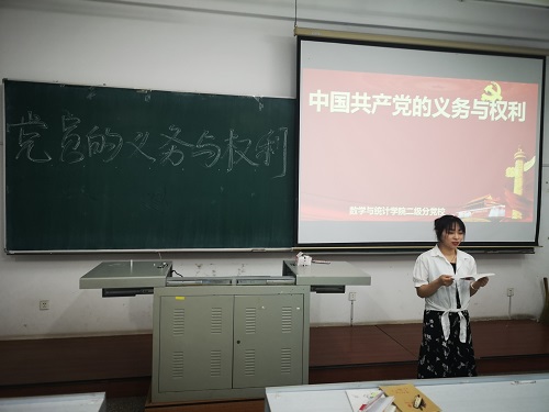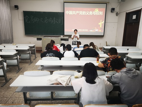 beat365在线唯一官网登录团委讯(通讯员:张及佳 桂尚珂)为了增强入党积极分子对党的认识和了解,提高同学们的思想觉悟,号召同学们向党组织积极靠拢,端正入党动机与态度。2019年7月5日下午6:00,beat365在线唯一官网登录二级分党校在beat365在线唯一官网登录林园校区教图楼309教室组织党课理论培训。本次培训由信网部部长卢继迎主讲,院本科生与研究生共10名入党积极分子参加本次党课学习。